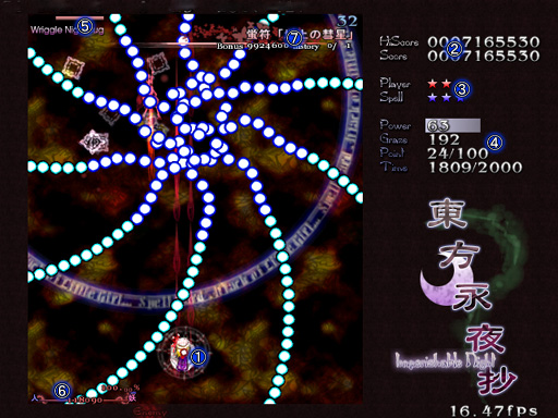 7.Spell Card的名字,奖励分,取得次数/遭遇次数